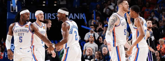 作為對比,西部這邊競爭更加激烈。休賽期被寄予厚望的火箭和勇士隊,目前僅僅排名西部第七、八位,也是打得有些割裂;同樣是西部豪門的湖人隊,盡管傷病不斷,但球隊在東契奇和里夫斯的帶領下,卻打出了亮眼戰績,目前排名西部第三;而最讓人驚嘆的,還是當屬衛冕冠軍雷霆隊,開季豪取7勝0負,穩坐聯盟第一。