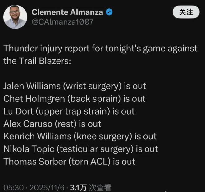 NBA常規賽今天繼續進行,開拓者主場對陣雷霆,大概率是打不過的。