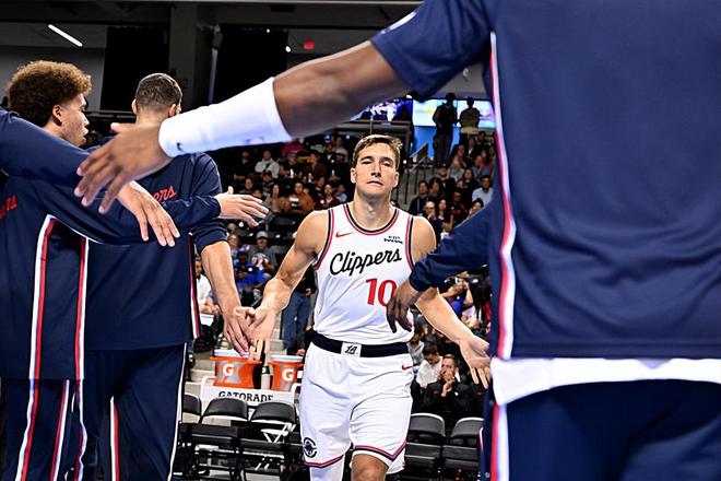 本場比賽中,快船雖然輸?shù)袅吮荣悾乔蜿?duì)的替補(bǔ)后場球員博格丹-博格達(dá)諾維奇(Bogdan Bogdanovic)的表現(xiàn)其實(shí)還是相當(dāng)不錯(cuò)的。博格達(dá)諾維奇全場出場28分21秒,投籃8中3,三分線外6中2,罰球4中4,得到了12分4籃板5助攻1蓋帽的全面數(shù)據(jù),還有1次失誤和3次犯規(guī),正負(fù)值也是達(dá)到了+10。博格達(dá)諾維奇在進(jìn)攻端也是展現(xiàn)出了比較全面的得分能力,他也是證明了自己具備一定的持球進(jìn)攻能力和投射能力。除此之外,他在傳球和組織方面也是能夠發(fā)揮出自己的價(jià)值的。博格達(dá)諾維奇在場上時(shí)球隊(duì)的局面也是不錯(cuò)的,至少也是能夠穩(wěn)住場面的。可惜他的出場時(shí)間和戰(zhàn)術(shù)地位比較有限,他在這種情況下也沒有辦法發(fā)揮出更大的作用了。
