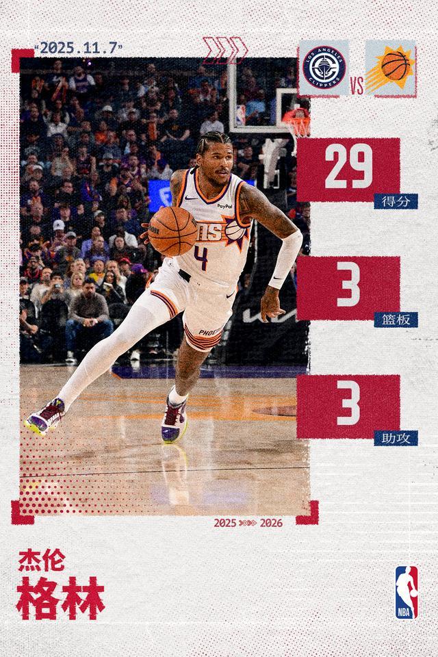 北京時間11月7日,菲尼克斯太陽在主場以115-102戰勝洛杉磯快船,球隊新援杰倫-格林在此役傷愈復出迎來太陽生涯首秀,全場命中6記三分貢獻出29分3籃板3助攻2搶斷的全面數據。